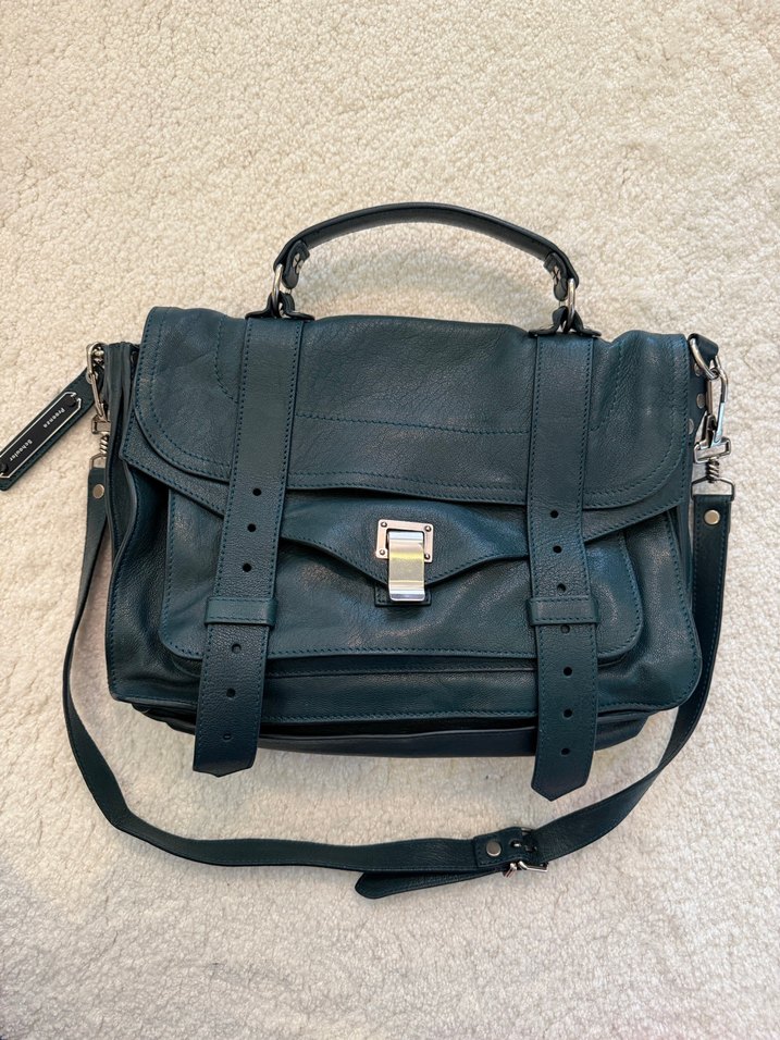 Koyu gri deri tokalı kayışlara ve elde taşıma sapına sahip bu kadın çantası, çağdaş stil ile Paris havasını birleştiriyor. Ofis için uygun.