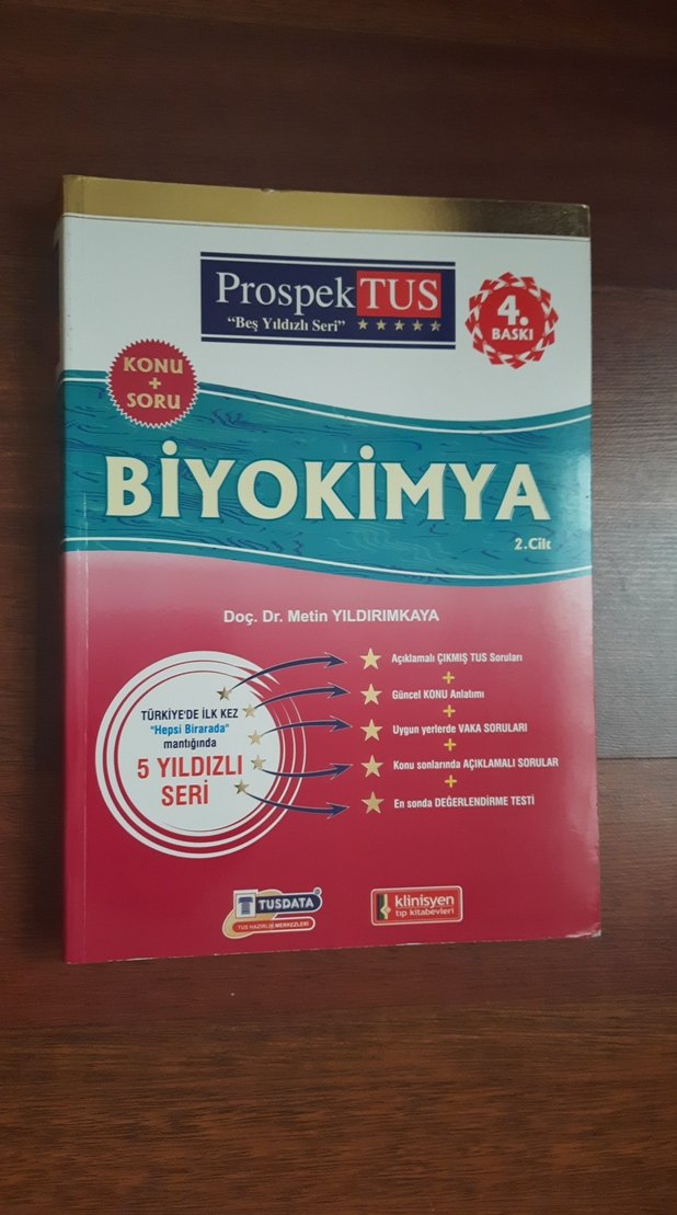 Doç. Dr. Metin Yıldırımkaya'nın ProspekTUS Biyokimya kitabı, açıklamalı çıkmış sorular, güncel konu anlatımı ve uygun yerde soru çözümleri içerir. Sonunda değerlendirme testi vardır. Temiz hiç kullanılmamış.