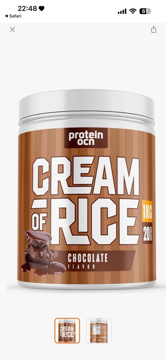 Protein OCN markasına ait çikolatalı aromalı pirinç kremi, 1 kg ve 20 porsiyonluk ambalajda sunulmaktadır.