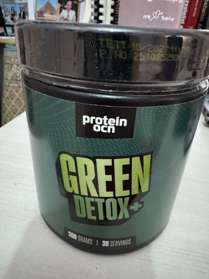 Protein OCN markalı parlak yeşil kaplı Green Detox tozu, 300 gram ve 30 porsiyon içerir. Sıfır jelatinli