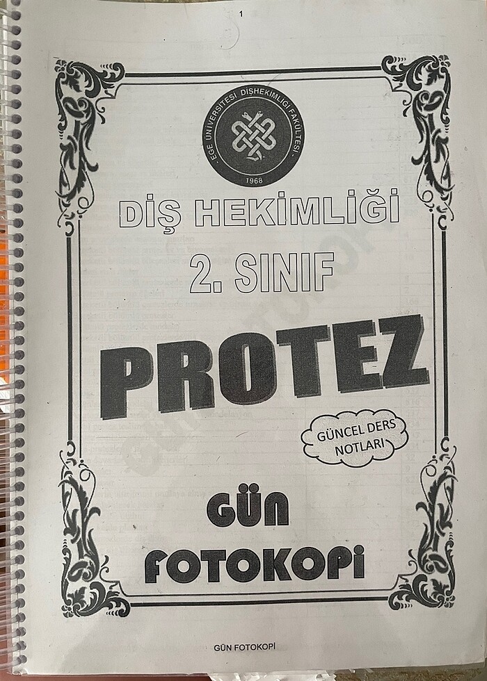 Ege Üniversitesi Diş Hekimliği Protez 2. Sınıf Ders Notları eksiksiz, temiz, sorunsuz