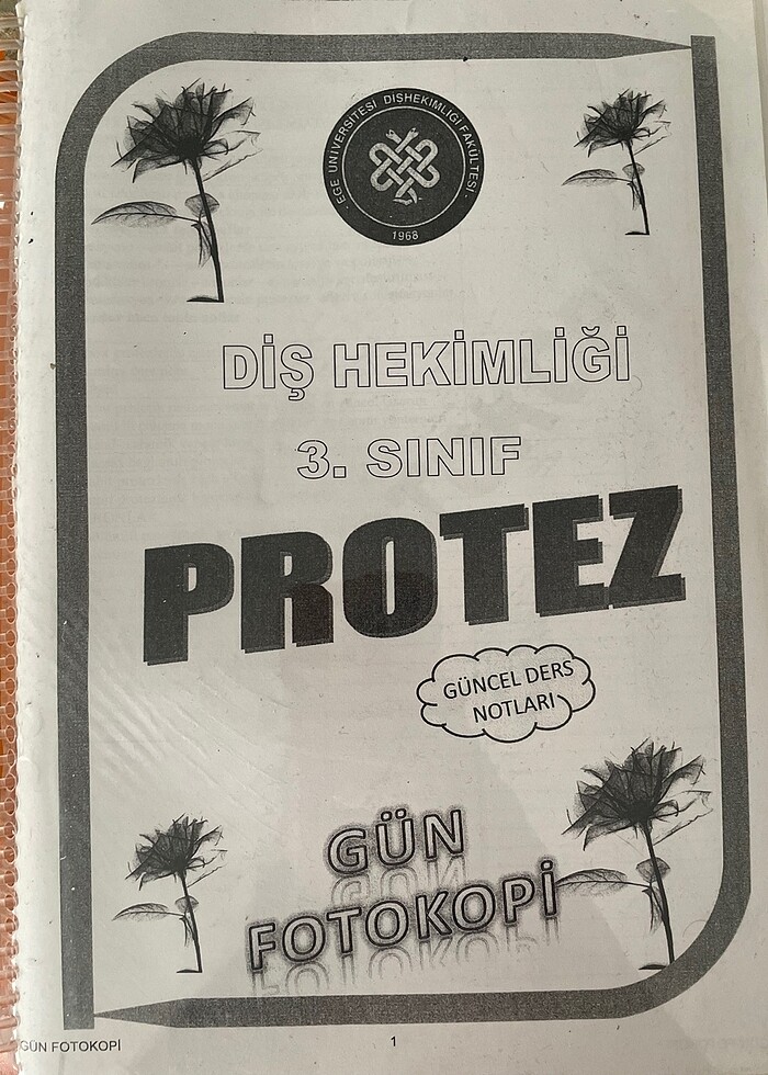Ege Üniversitesi Diş Hekimliği Protez 3. Sınıf Ders Notları eksiksiz, temiz, sorunsuz