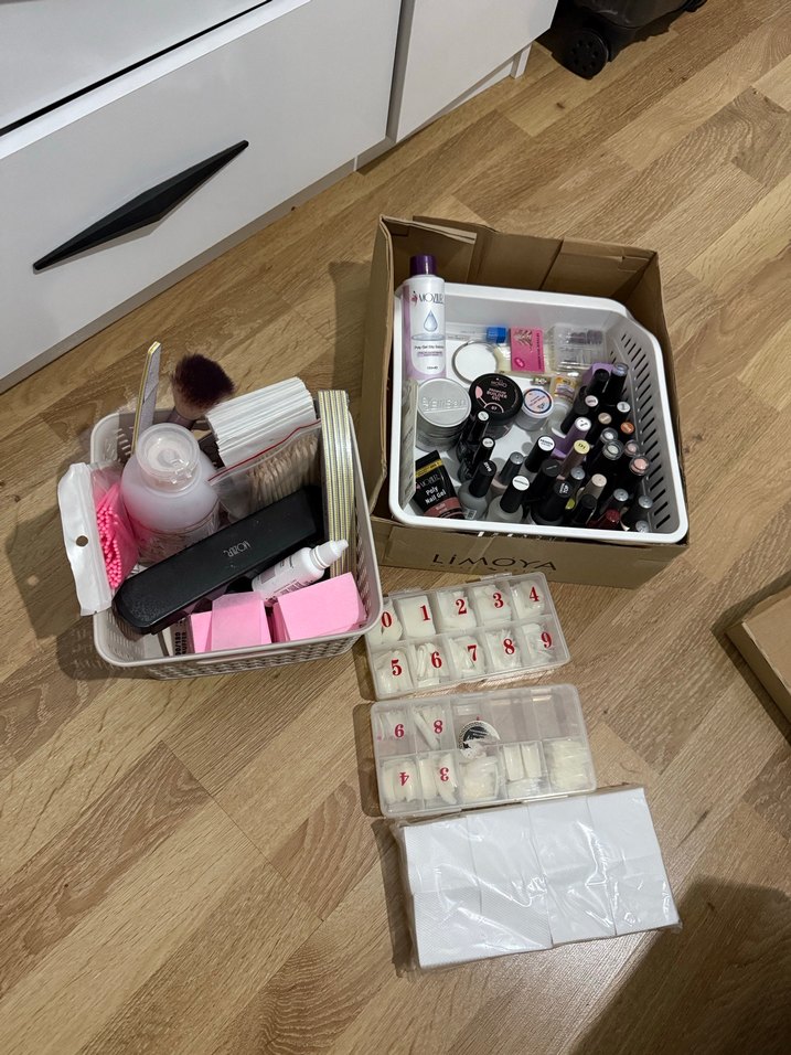 Ürünlerin birçoğu ya az kullanılmış ya hiç kullanılmamıştır. Hazırlık aşamasındaki bütün ürünler görselde mevcut. Jel ve ojeler fiyata dahil değil