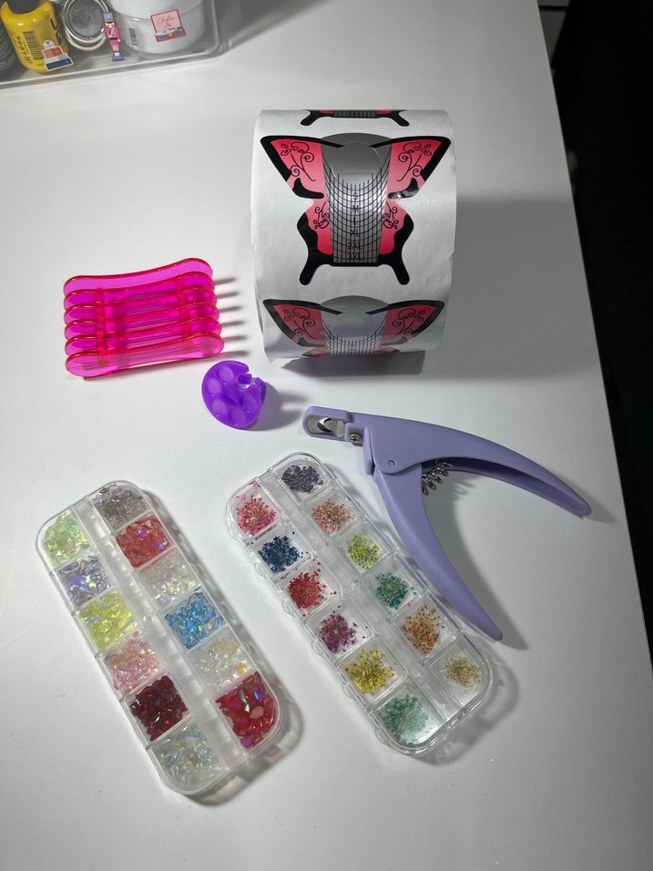 Tips makası Şablonu 500 lü olarak almıştım şuan 250-300 arasında olduğunu tahmin ediyorum. Fırça tutucu ve yüzük şeklinde renk paleti 12 bölmeli 2 adet tırnak süsü
