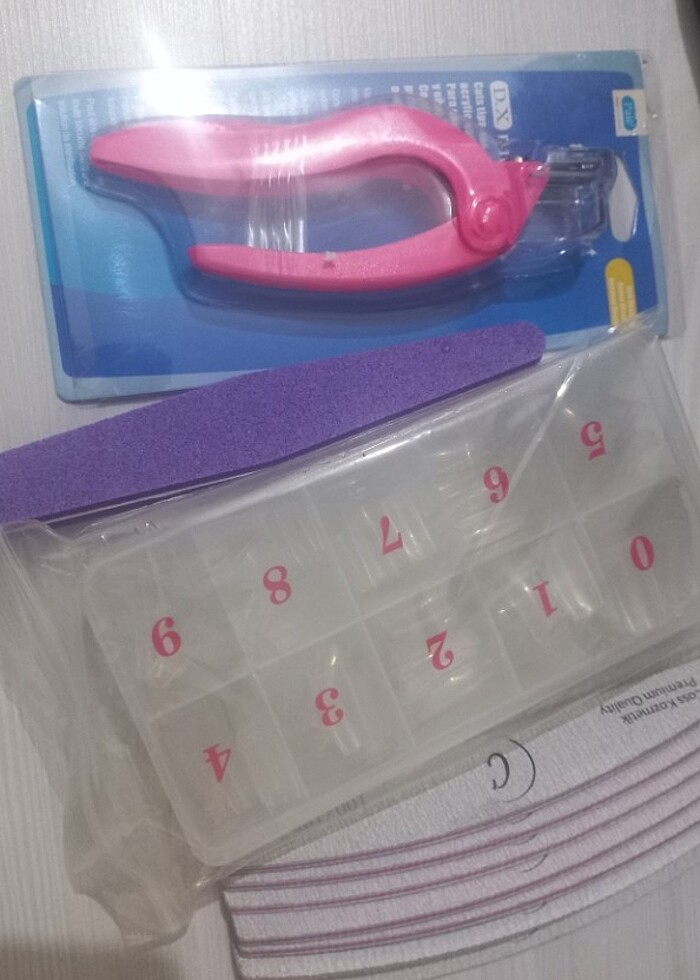 1 adet protez tırnak tips kesici 1 adet Yarım Ay 500'Lü Protez Tırnak Jel Tips (Şeffaf) 7 adet kağıt törpü 100/180 1 adet buffer Hiç kullanılmadı paketinde gönderilecek