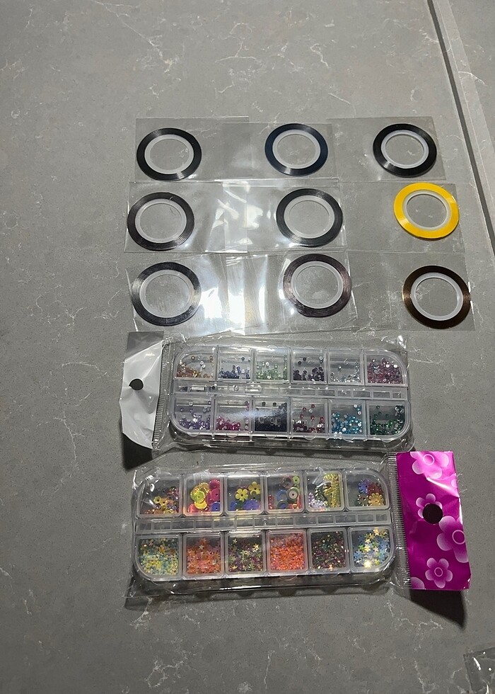9 adet serit süsleme 2 kutu boncuk süsleme 2 adet parmak ayırıcı (pazarlık payı var)