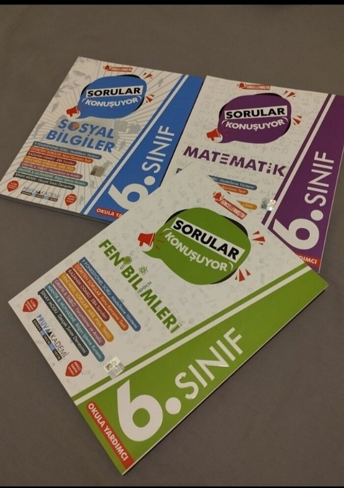 Kitapların hiçbiri çözülmedi.6. sınıf Pruva Akademi, Sorular konuşuyor, Matematik,Fen bilimleri ve Sosyal bilgiler soru Bankaları.3 kitap