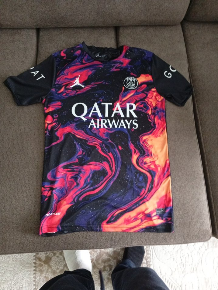 Sentetik kumaştan üretilmiş, çok renkli baskılı, kısa kollu, bol kesim ve yuvarlak yakalı erkek spor tişörtü. Üzerinde 'QATAR AIRWAYS' yazısı bulunur.