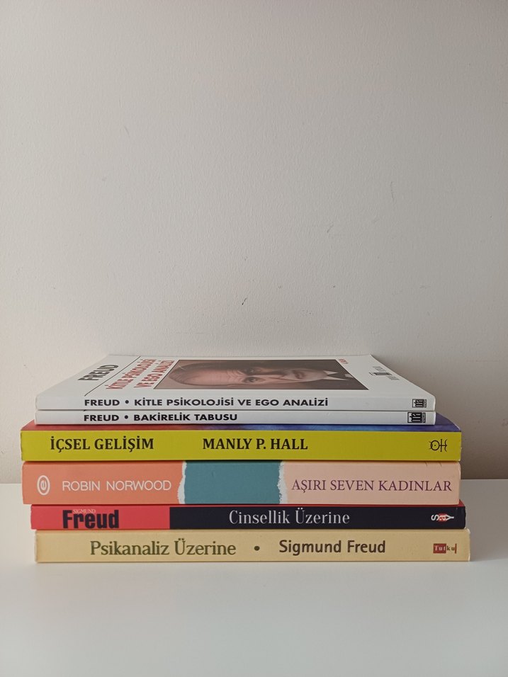 Sigmund Freud, Manly P. Hall ve diğer yazarların psikanaliz, içsel gelişim ve cinsellik üzerine kitaplarından oluşan bir set.