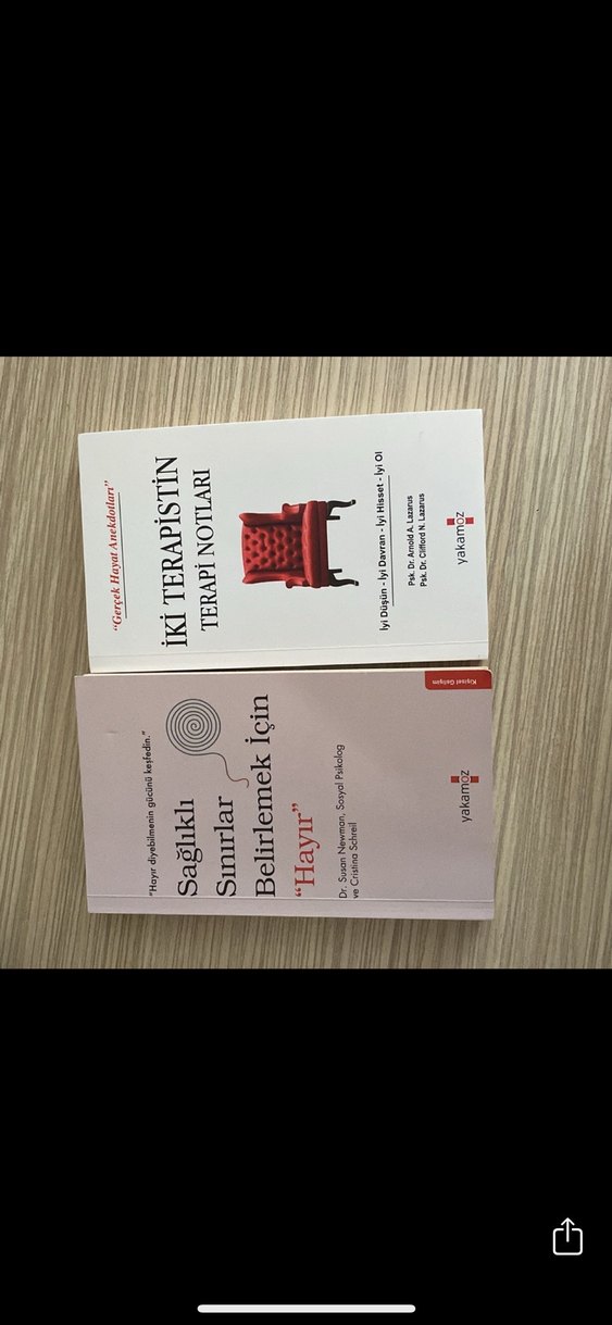 "İki Terapistin Terapi Notları" ve "Sağlıklı Sınırlar Belirlemek İçin Hayır" adlı iki terapi ve psikoloji kitabı.