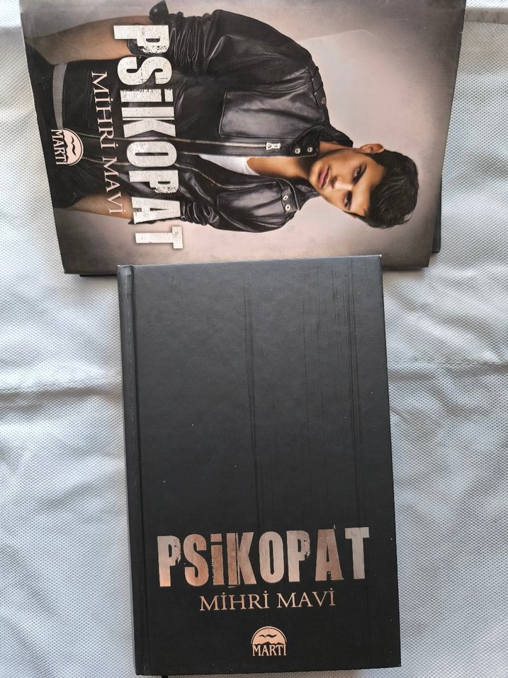 Mihri Mavi'nin Psikopat adlı romanı, Martı yayınevi tarafından basılmıştır. Kapağında deri ceketli bir adam yer alır, karanlık ve yoğun bir tema sunar.