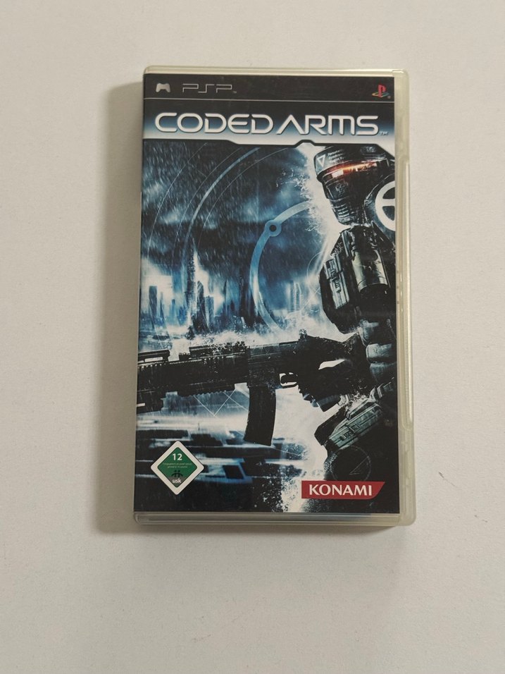 KONAMI tarafından geliştirilmiş, PSP için CODED ARMS oyunu. Kapağında geleceğin askerini gösterir. 12 yaş ve üzeri için uygun.