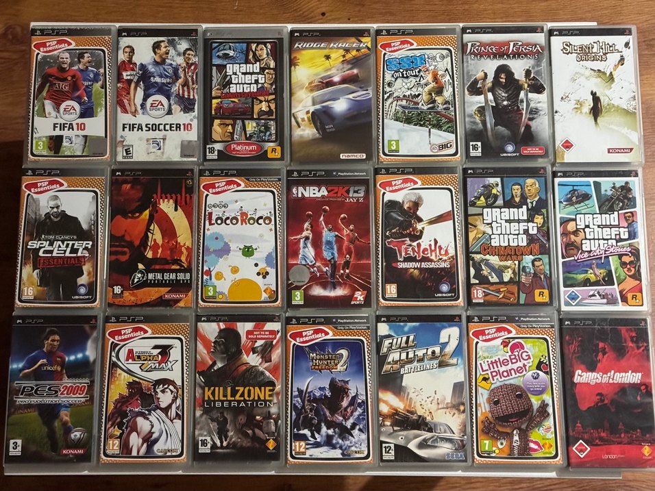 Standart oyunlarda 2-3 lu alımlarda tane 500 TL Farklı türlerde PSP konsol oyunları koleksiyonu. Grand Theft Auto, NBA 2K17 ve Monster Hunter gibi oyunlar içerir.