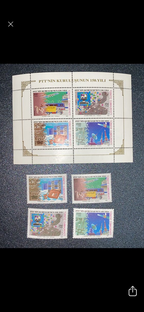 Ptt’nin kuruluşunun 150.yılı blok ve tekli seri damgasız çok temiz pul koleksiyonu yanına FDC zarfı hediye