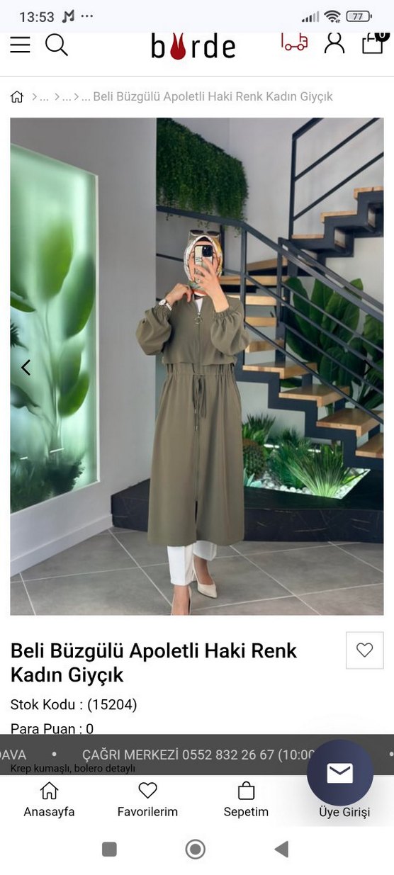 Beli büzgülü ve apoletli, uzun kesim, bol fit haki renk kadın trençkot. Uzun kollu, yuvarlak yakalı, sentetik kumaştan üretilmiştir. Ürün sıfır kullanılmadı.M beden yazıyor ama kalıbı geniş L bedene daha uygundur