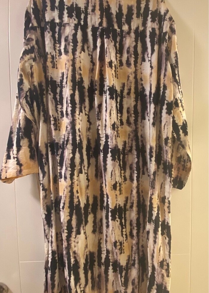Yaka ve kolda sarı detay bulunan çok şık gömlek tunik