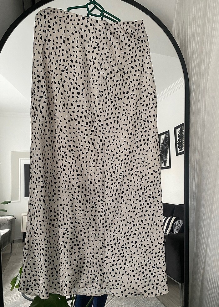 Puantelı beyaz saten etek