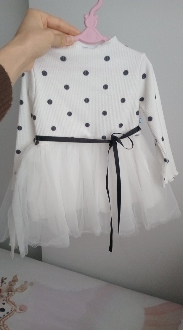 Puantiye Desenli Beyaz Kız Çocuk Elbise