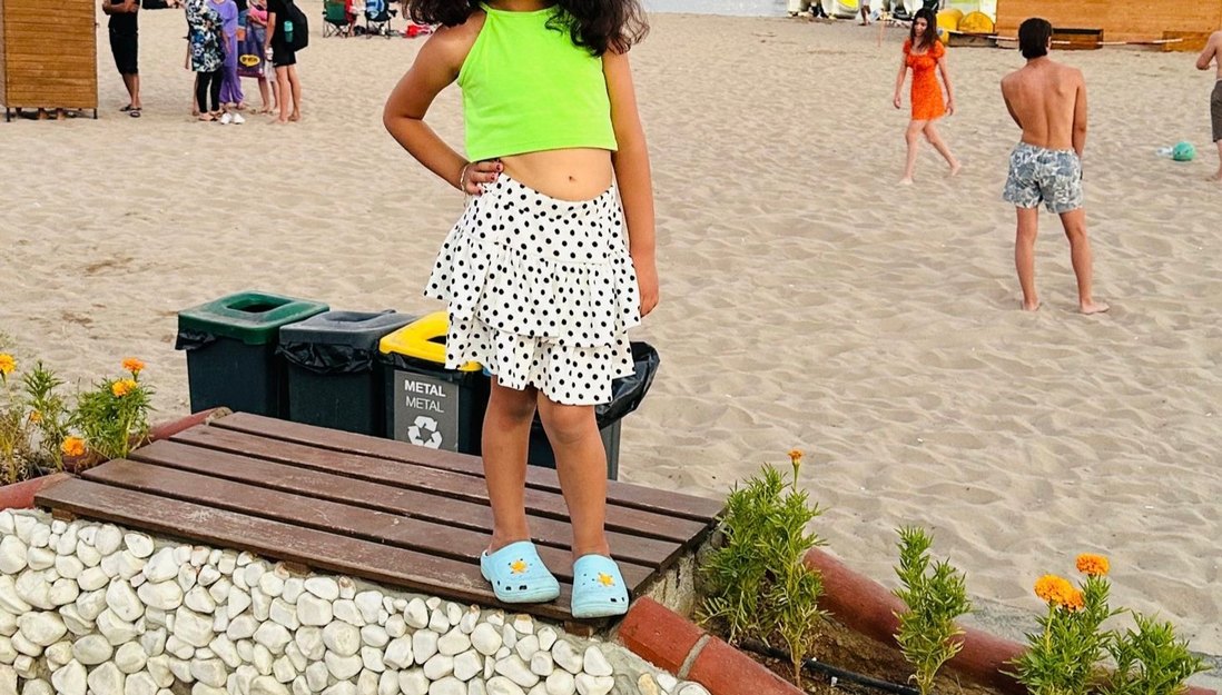 Puantiye desenli, fırfırlı ve bol kesim kız çocuk eteği. Hafif sarı tonlarıyla sokak modasına uygun rahat bir modeldir. sadece bir yerinde lek var oda göze çarpmıyor