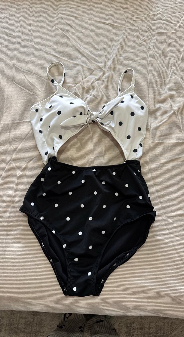 Kadınlar için puantiye desenli, askılı ve oturan kesime sahip mayo. Tokalı detay ve midi boy ile plajda Paris tarzı ve sokak modası birleşiyor. ️