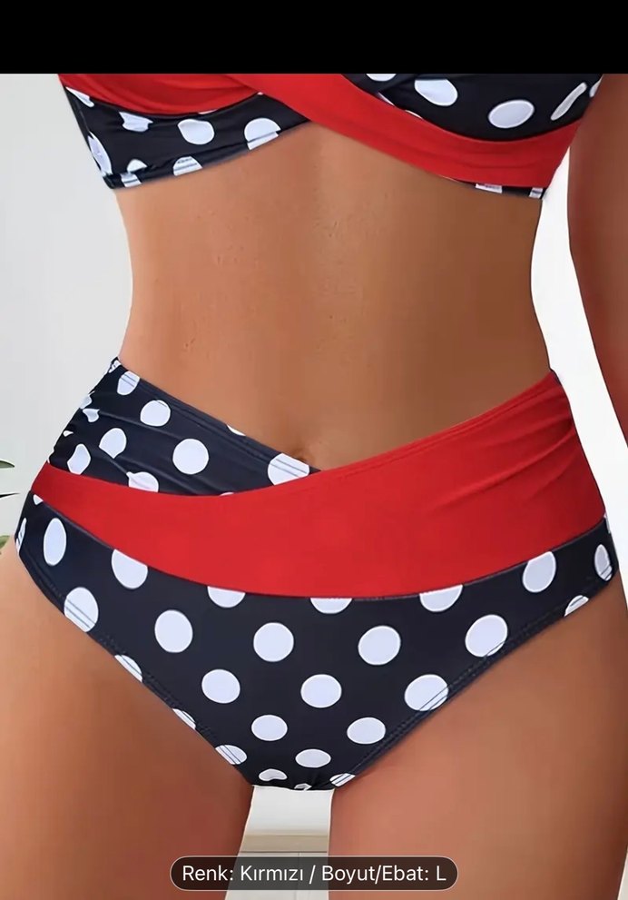 Puantiye Desenli Kırmızı Kemerli Mini Bikini