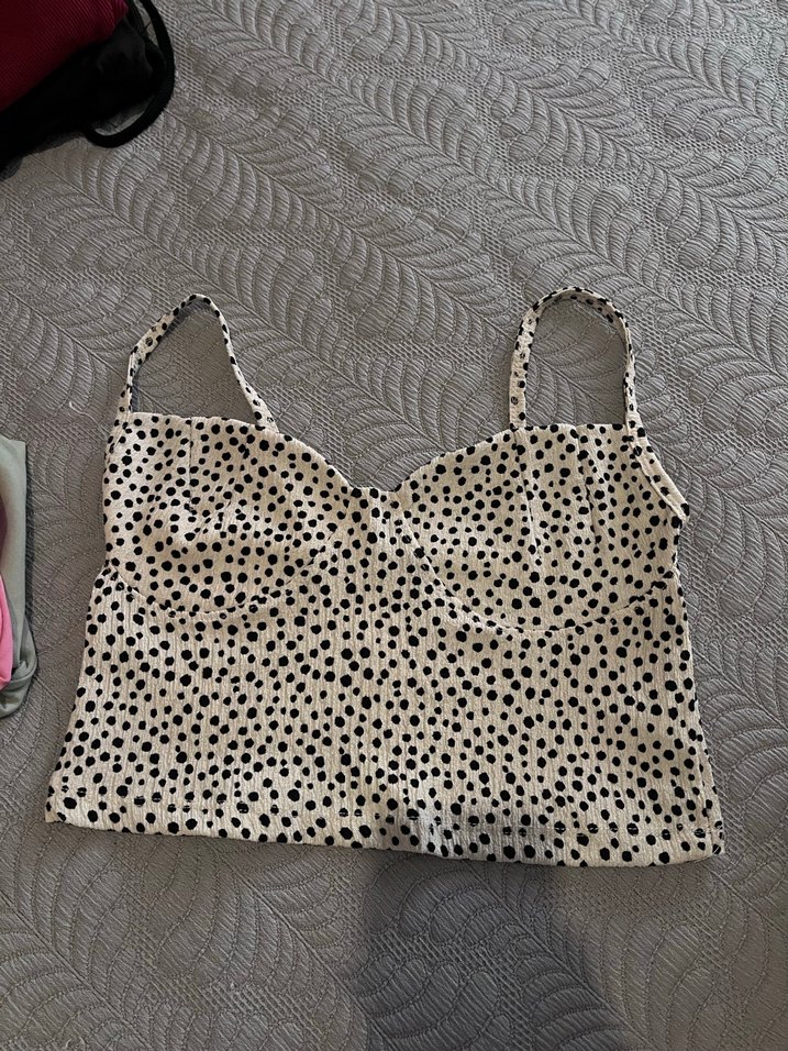 Puantiye Desenli Kısa Askılı Kadın Üst