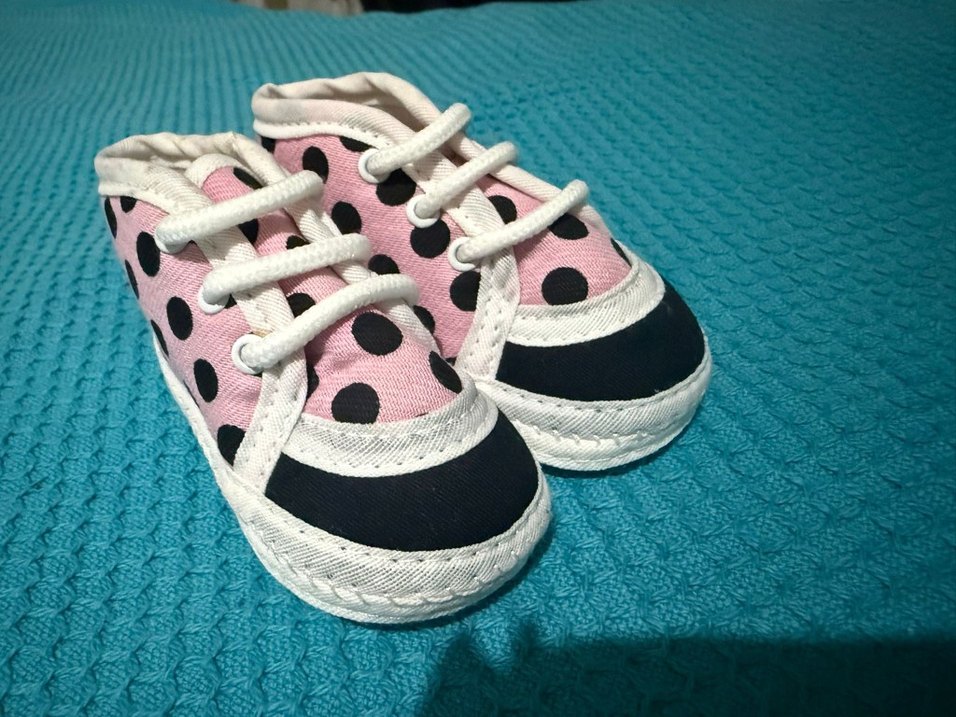 Pembe puantiye desenli kız bebek ilk adım ayakkabısı, fırfır detaylı ve kauçuk tabanlıdır, rahat ve şık bir seçenektir. Numara temsilidir