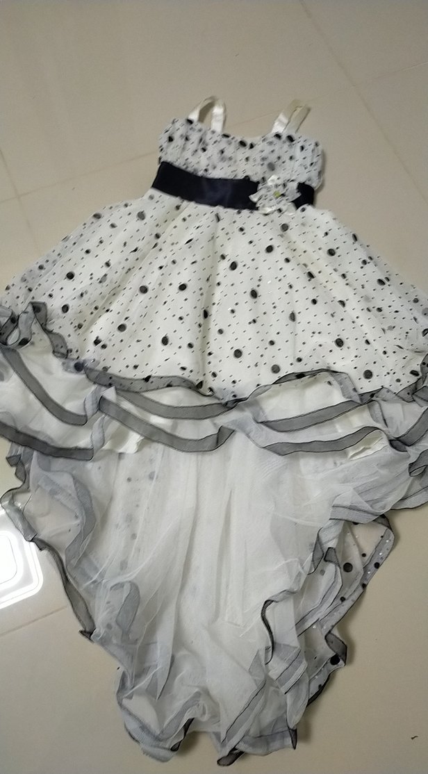 Bu straplez, kolsuz kız çocuk elbisesi, siyah puantiye deseni ve fırfır detaylarıyla yumuşak sentetik kumaştan yapılmıştır. Siyah bel bandı elbiseye kontrast katar.