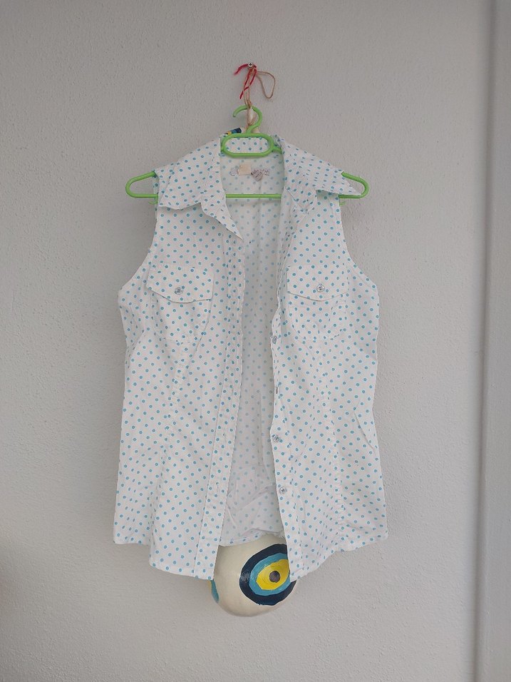 Puantiye Desenli Kolsuz Gömlek