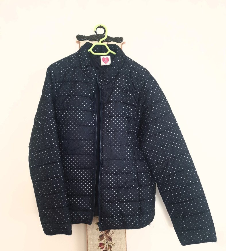 Puantiye Desenli lacivert Fermuarlı Kadın Ceket