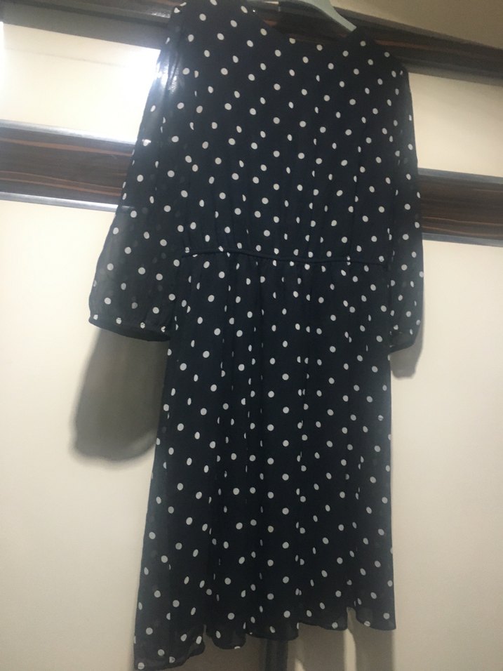 Siyah beyaz puantiye desenli midi hamile eteği, piliseli ve bol kesim. Yumuşak sentetik kumaştan, günlük kullanıma uygun bohem Paris tarzı.