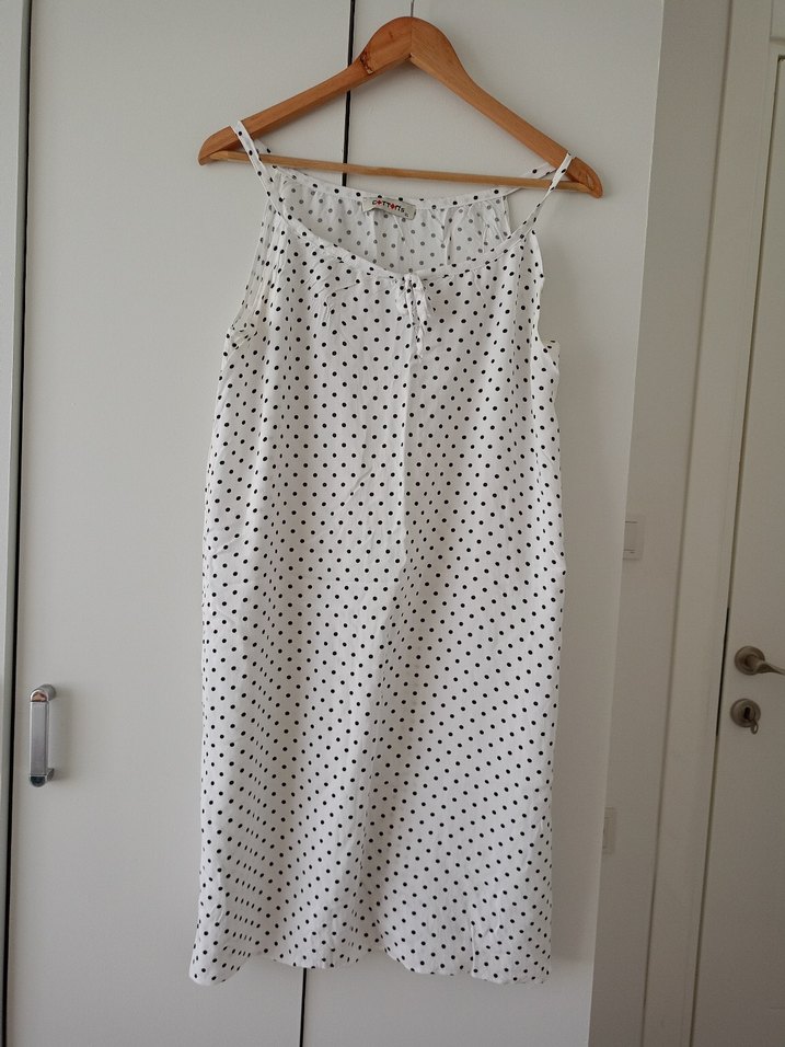 Askılı dokuma Viskon kumaştan ekru renk üstü siyah puanlı mayo üstü plaj elbisesi evde de giyilebilir