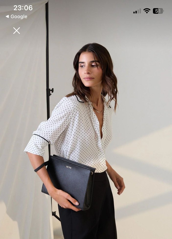 Siyah deri mini elbise, puantiye desenli, yakalı ve uzun kollu, ofis için modern ve zahmetsiz şıklık sunar.