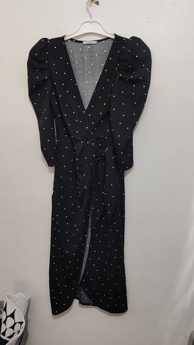 Siyah, puantiye desenli kadın tulumu, uzun kollu ve yakası kesimli. Drapeli tasarımı ile vücuda oturan kesime sahip, yumuşak sentetik kumaştan üretilmiştir. Günlük kullanıma uygun, Paris sokak modası tarzında. ✨ 1kere giyildi