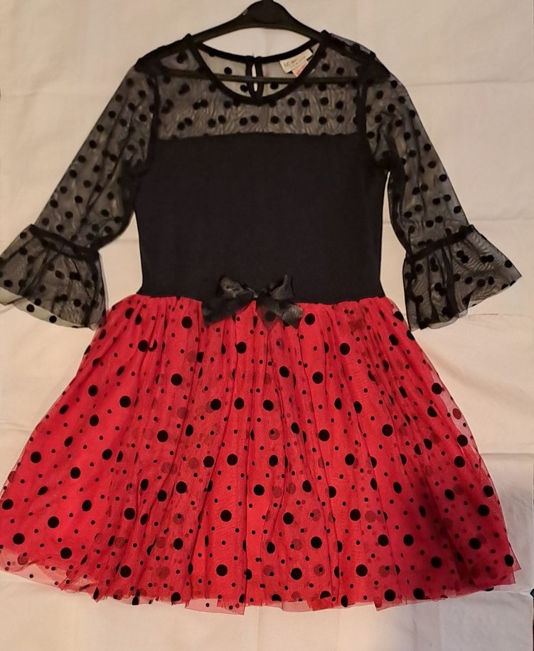 Puantiye Desenli Siyah kirmizi kız Çocuk elbise