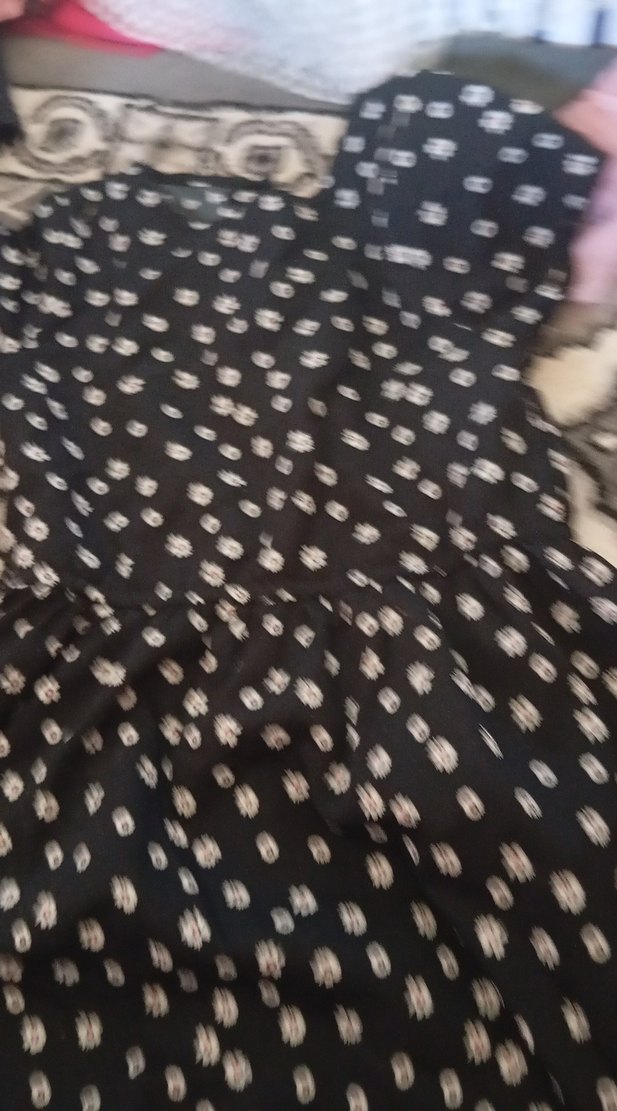 Puantiye desenli siyah kiz cocuk elbisesi, fırfır detaylıdır. Bol kesim, günlük kullanıma uygundur.