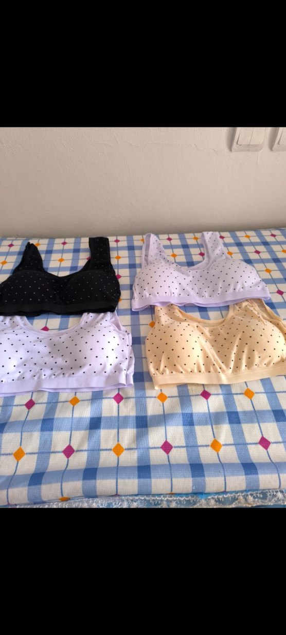 Beyaz, siyah ve bej renklerde, puantiye desenli, normal boyda, rahat spor sütyenler. Athleisure tarzına uygun.kilotlar 70₺ doğulu pedalı çocuk sütyenlerin adeti de 100₺ bu ilanı almayın istediğin ürünü söyleyin ilan açayım