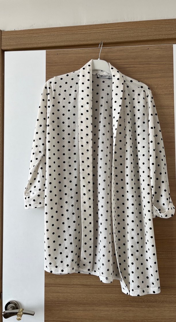 Puantiye Desenli Uzun Kesim Kadın Keten Ceket