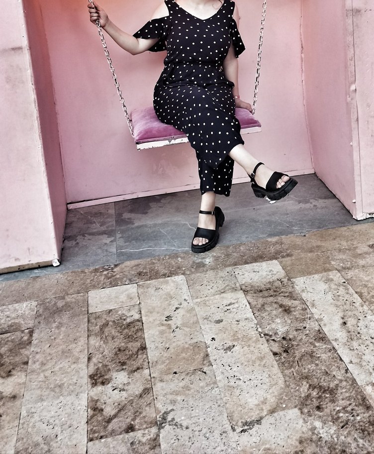 Puantiye Desenli V Yakalı Tulum