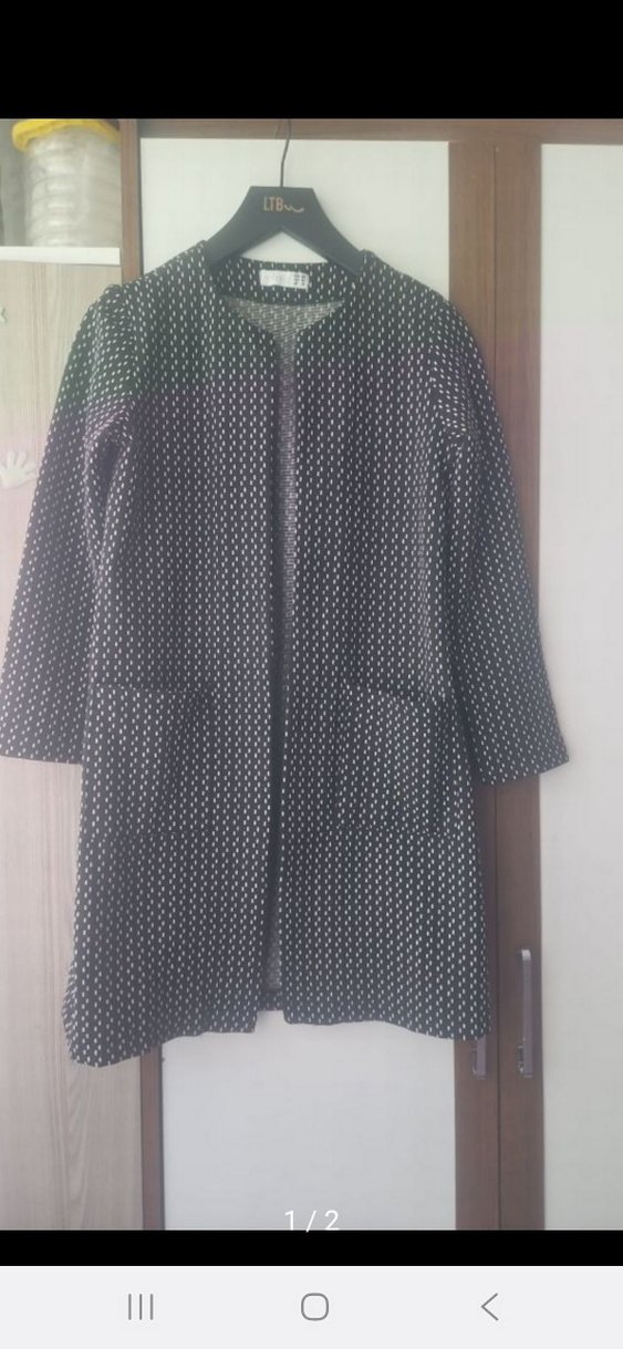 puantiyeli blezir ceket, triko dokulu sentetik kumaştan, uzun kollu ve kırmalı yakalıdır. Rahat kesimi ve minimal normcore tarzıyla günlük kullanıma uygundur.