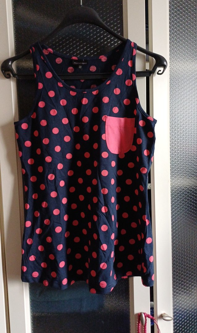 Kolsuz, fitted kesimli puantiyeli desene ve düğmeli detaya sahip. Yuvarlak yakalı, pembe cep detaylı, yumuşak sentetik kumaştan üretilmiştir. Günlük rahat stil için uygun.