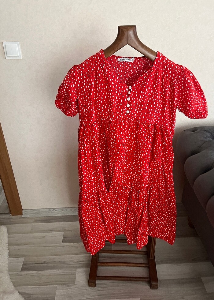 Puantiyeli elbise 42 beden midi boy lacivert renk de mevcuttur