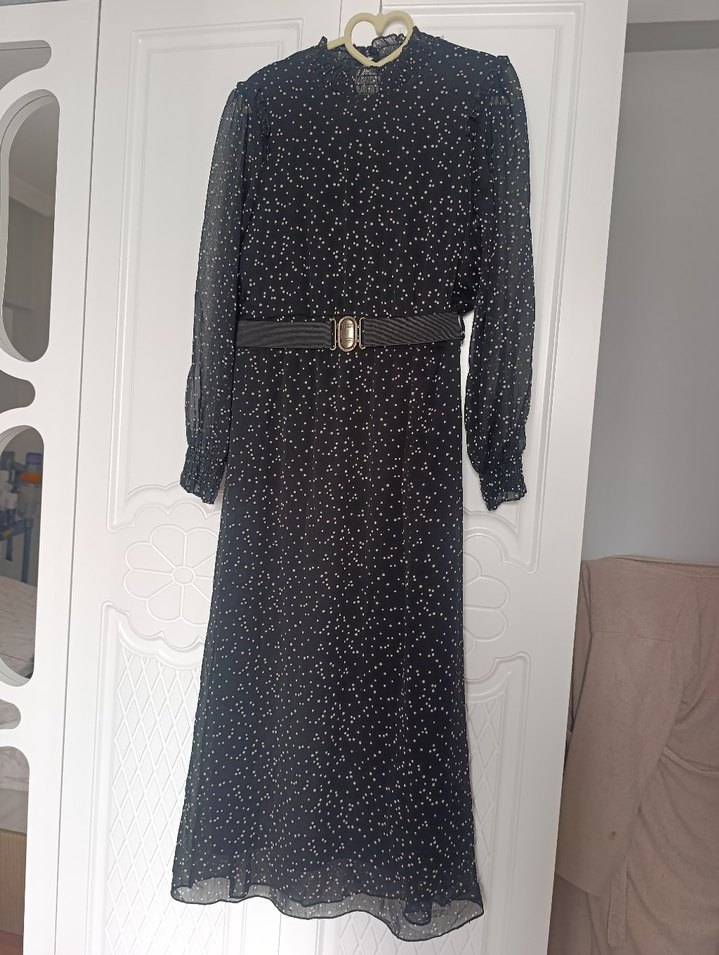 Özel günlerde kullanıabileceginiz puantiyeli Kemerli elbise kolları tül elbise ici astarlı 36 beden 34 için de uygun kemeri anlasilsan diye elbise içine aşkı koydum beline Uzun siyah elbise, uzun kollu ve yüksek yakalıdır. Yumuşak sentetik kumaştan yapılmış, kemerli ve sade tasarımlıdır. Günlük kullanıma uygundur.