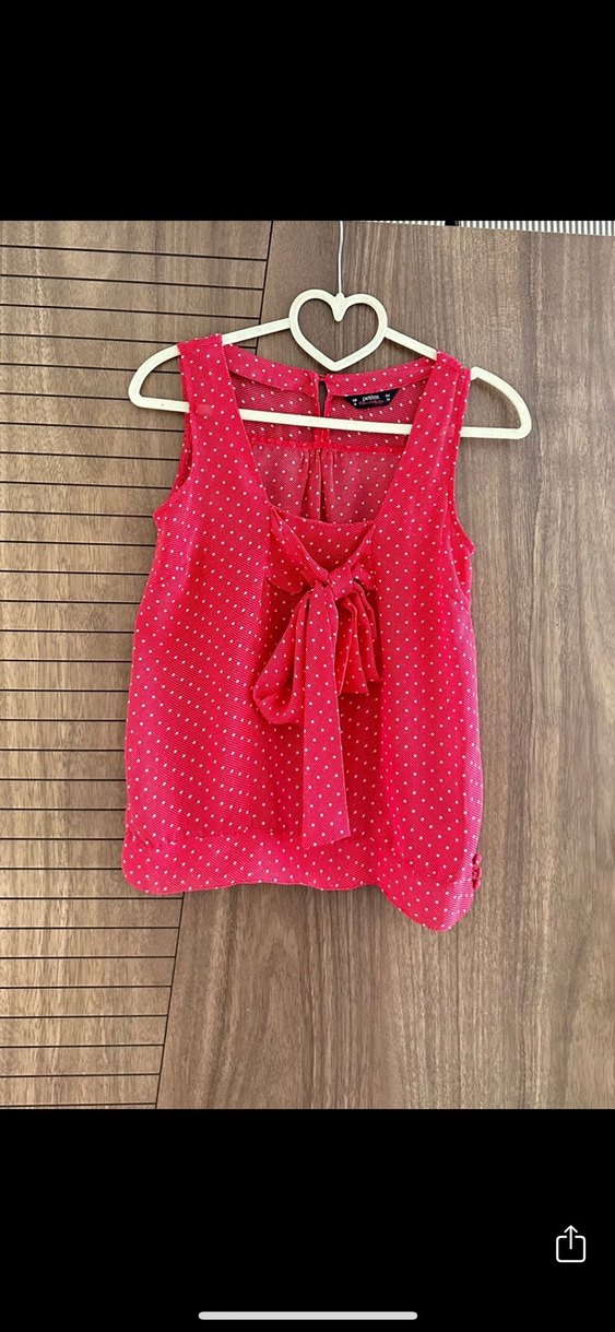 Puantiyeli Fiyonklu kırmızı Kolsuz Bluz