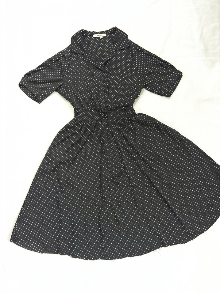 Küçük puantiyeli koton midi boy elbise.