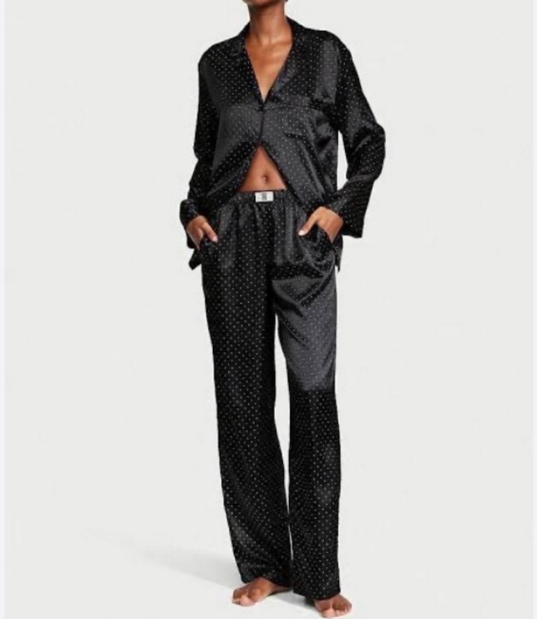 Puantiyeli, uzun kollu,, kadın pijama takımı, şık ve rahat yurt dısından gelmiştir bedeni olmadıgı için kullanılmamştır.