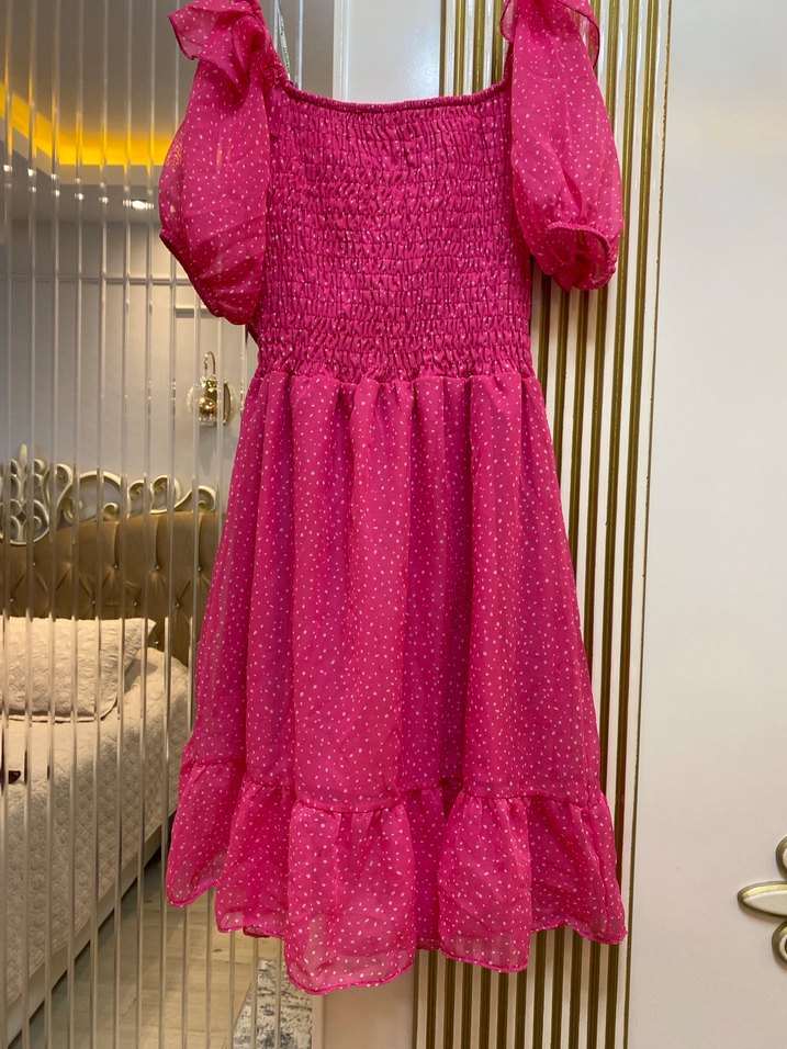 Puantiyeli Pembe Bohem Kız Elbisesi