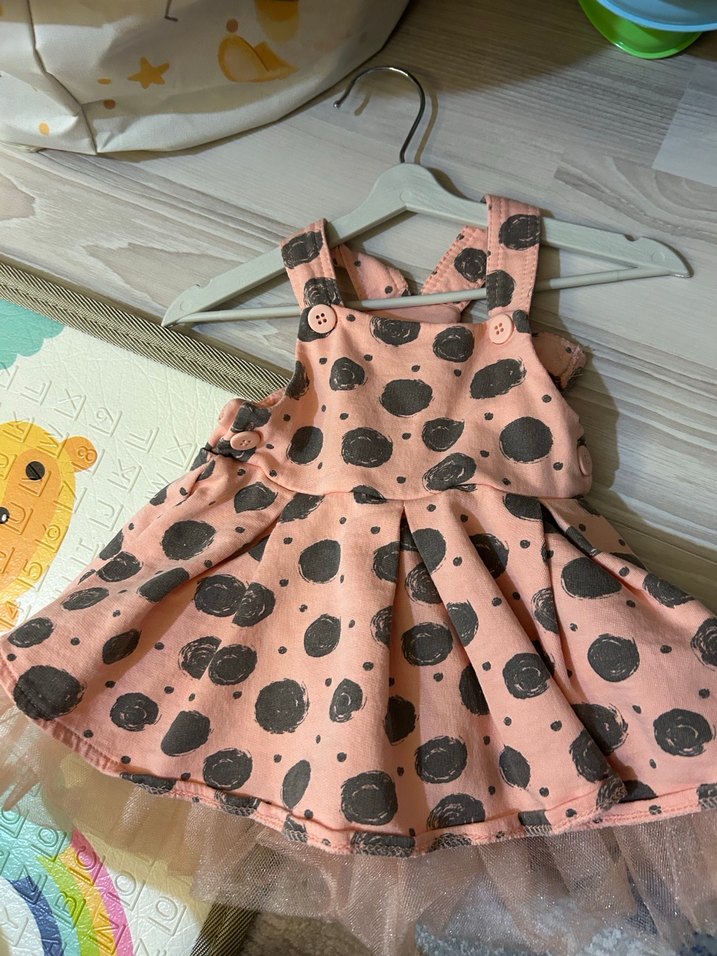Siyah puantiyeli, düğmeli askılı, salaş kesim pembe elbise, bohem tarzda rahat bir seçenek sunar.