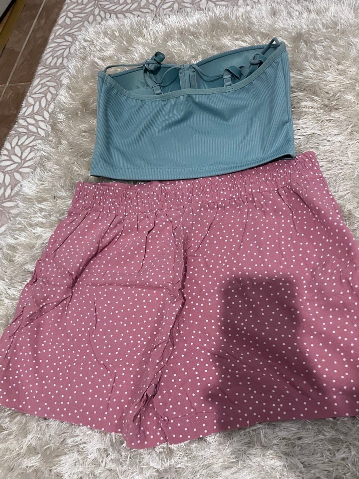 Pembe renkte, bol kesim ve fırfırlı detaylı, pastel tonlarda puantiyeli şort Rahat ve şık sokak stili için uygundur. Büstiyerle beraber satışta