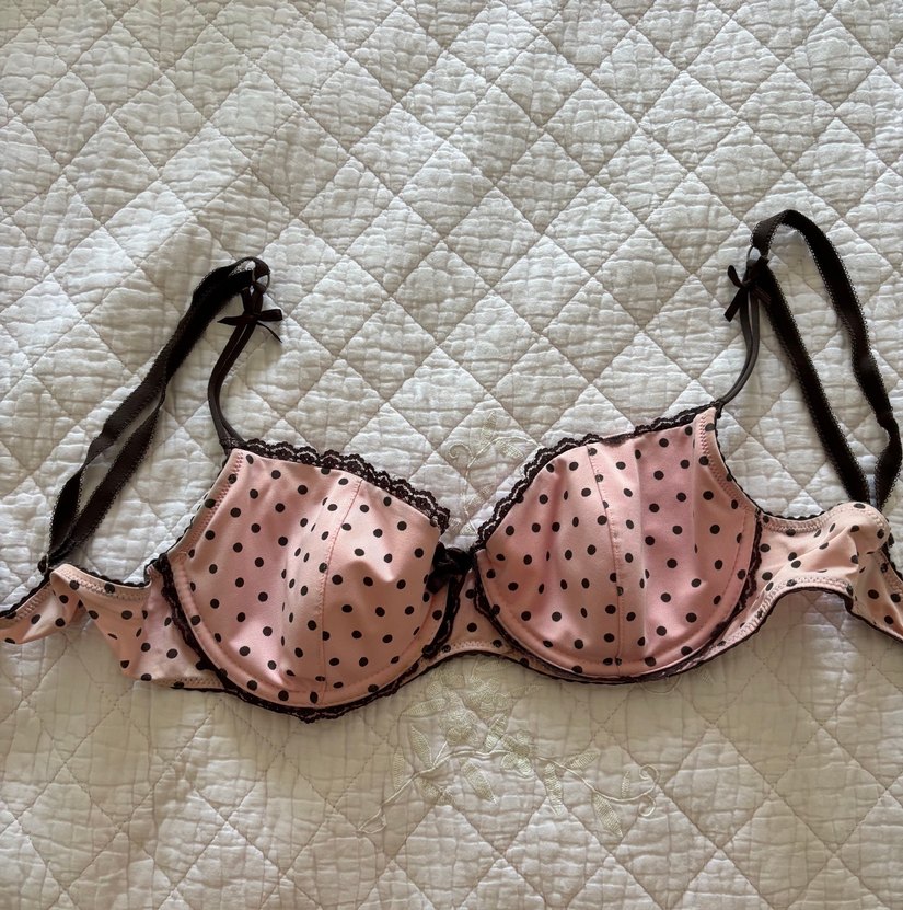 Pastel pembe, puantiyeli ve dantel detaylıdır Çok iyi durumda 80C İstenirse alt takımı da vardır